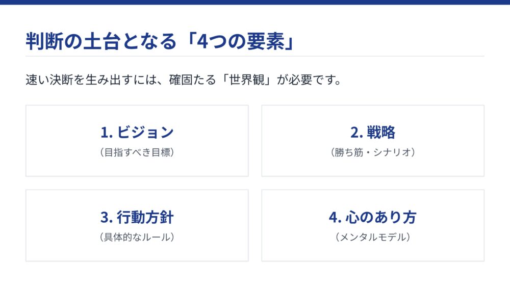 そして、迷いのない素早い決断を生み出すには、あなたの中に確固たる世界観を持つことが重要です。