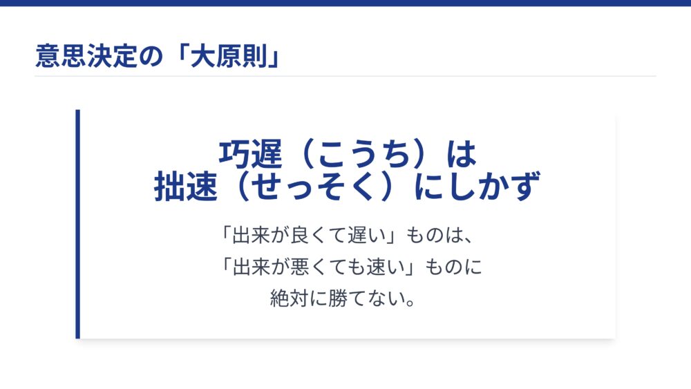 速さに価値を置くなら、長い時間をかけた意思決定は必要ありません。