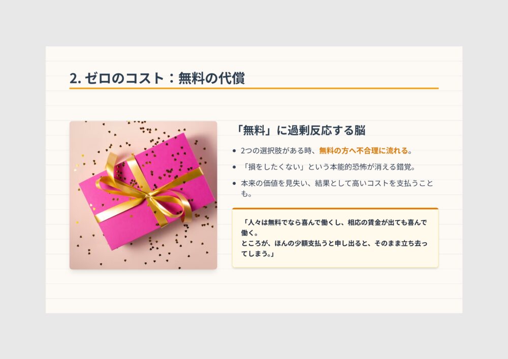次に、「無料(タダ)」という言葉が持つ、恐ろしい魔力についてです。