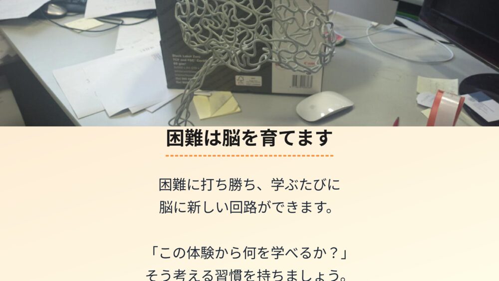 失敗や困難は、あなたの脳を育て、未来を切り開くための、素晴らしい成長のチャンスです。