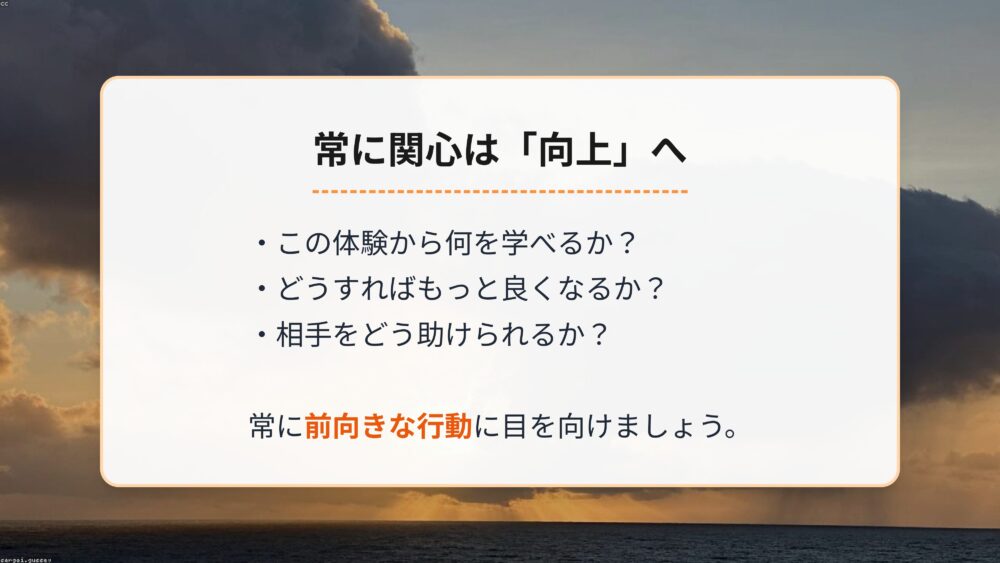 ここまでは、自分自身の成長についてお話ししてきました。