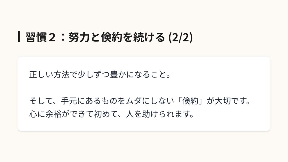 習慣2:努力と倹約を続ける (2/2)