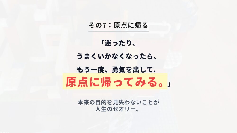 最後、七つ目は、原点に帰る、ということです。