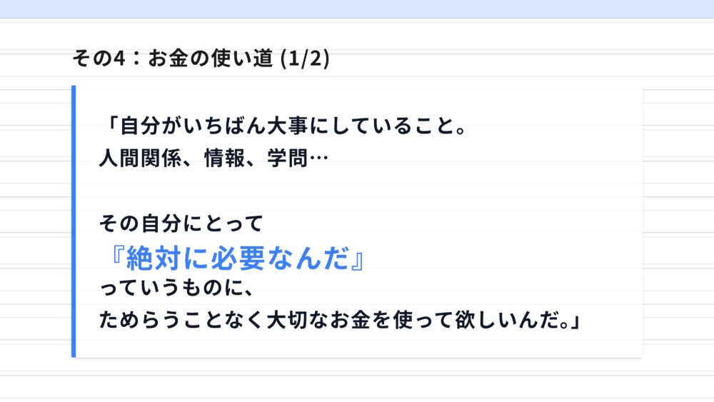 四つ目は、お金の使い方についてです。