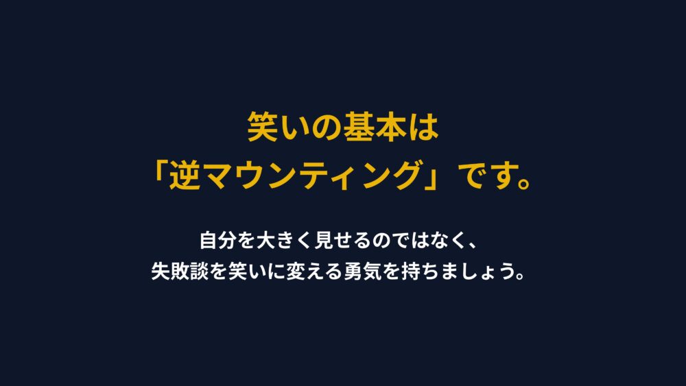 笑いや共感の基本は、常に逆マウンティングにあると覚えておいてください。