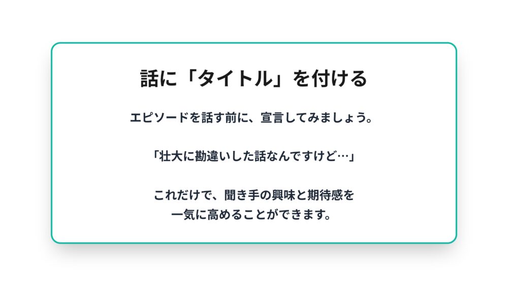 それは話し始める直前に、そのエピソードにタイトルを付けるというテクニックです。