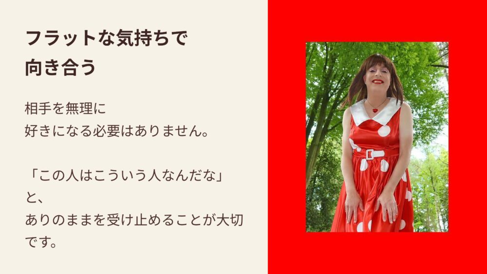 大切なのは、好き嫌いという感情を一旦横に置いて、フラットな気持ちで相手に向き合うことです。