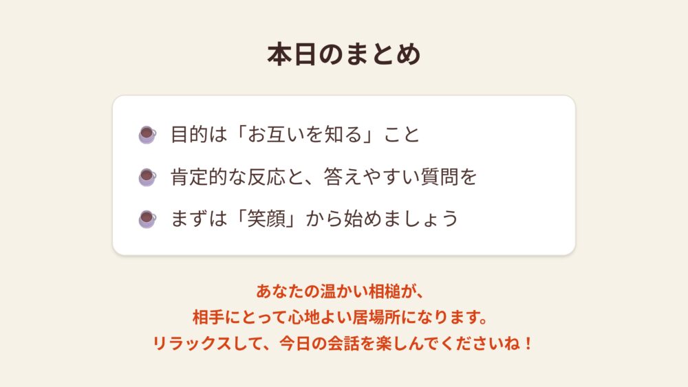 そして何より、温かい笑顔で相手に向き合うこと。