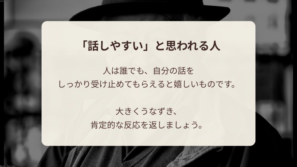 自分の話を肯定的に受け止めてくれる人の前では、人は自然と心が開き、もっとこの人と話したいと思うようになります。