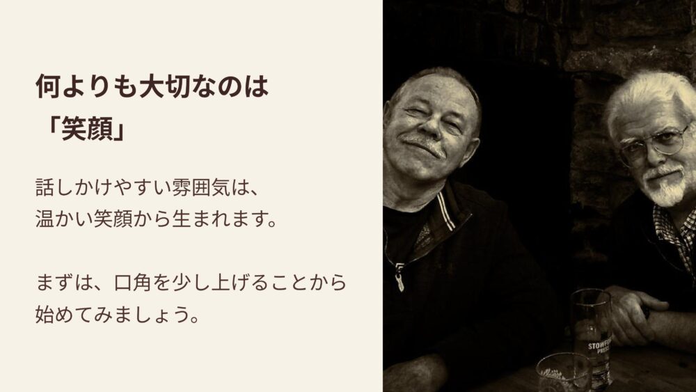 話しかけやすい、温かい雰囲気というのは、何よりもまず、あなたの笑顔から生まれるんです。
