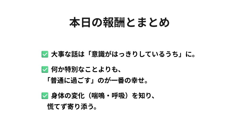 これであなたは、大切な人と心を通わせる最後の時間の過ごし方が、わかりましたね。