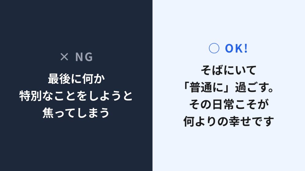 最後に何か特別なことをしてあげなきゃと必死になって、旅行や豪華な食事を計画しようと、するかもしれません。