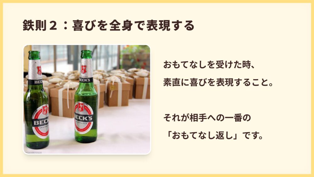 誰かからおもてなしを受けたり、贈り物をもらった時、あなたはどんな反応をしていますか?