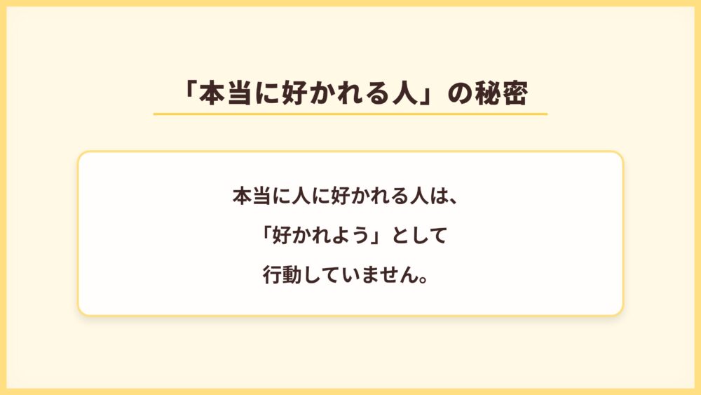 それは、本当に人に好かれる人は、決して誰かに好かれようとして行動していない、ということです。