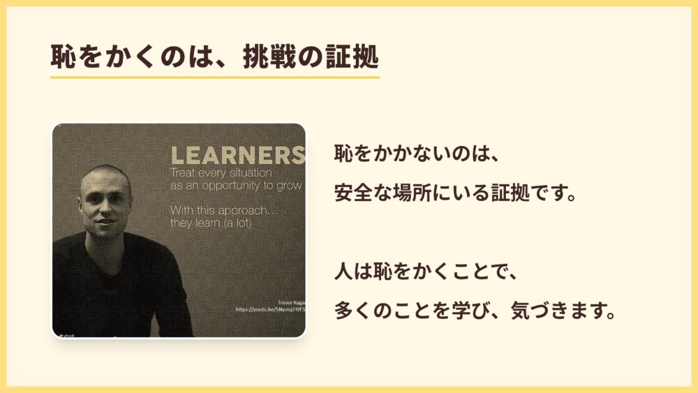 恥をかかないということは、自分がこれまでやってきた安全な範囲の中でしか動いていないという証拠です。