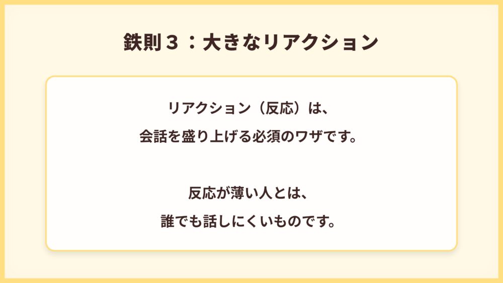 相手の話に対する反応、つまりリアクションが何よりも重要です。