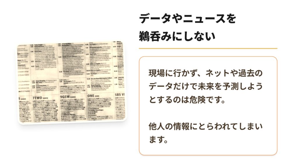 メディアのデータやニュースを、そのまま鵜呑みにしないことも重要です。