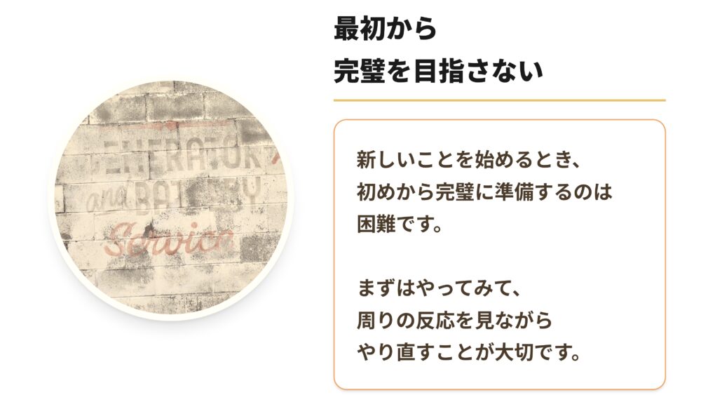 新しいことを始めるとき、初めから完璧を目指さないことも大切です。