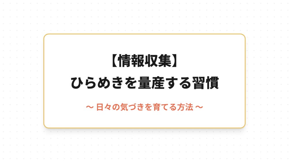 今回は、情報収集と、そこからひらめきを生み出す習慣について、あなたと一緒に考えていきたいと思います。