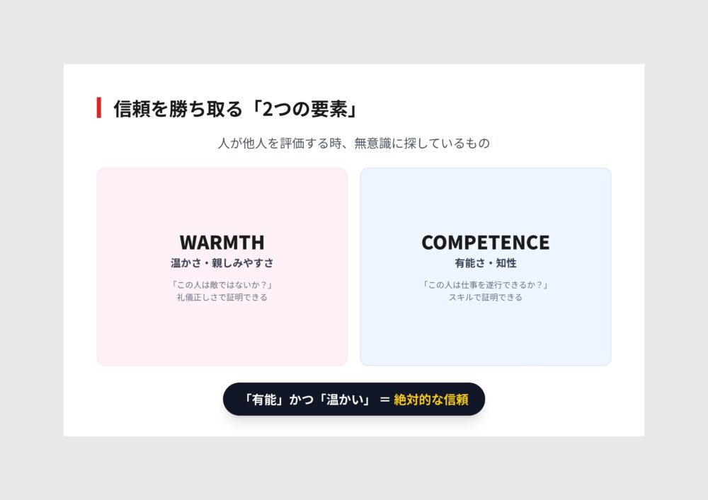 人の印象を左右する重要な要素は「温かさ」と「有能さ」の2つです。