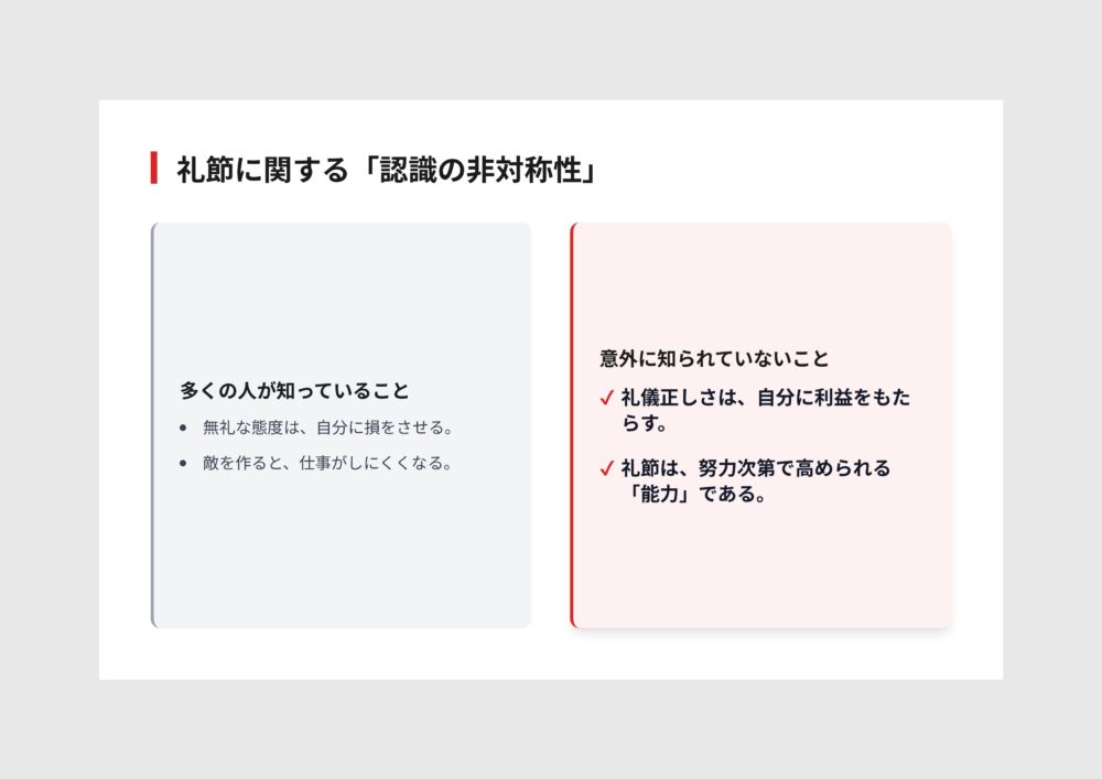 礼節は単なるマナーではなく、強力な投資戦略なのです。