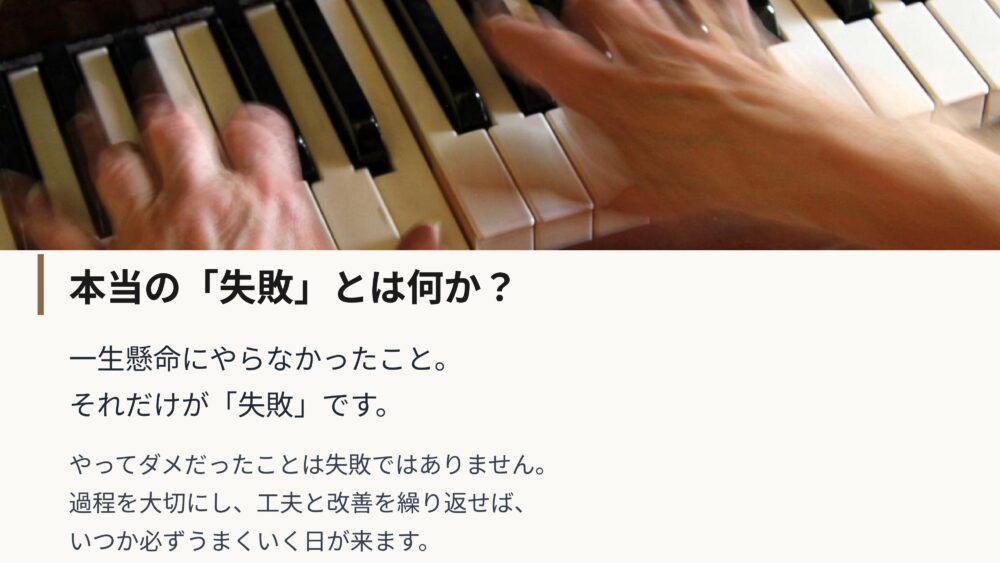 最初から完璧を求めて何もしないことこそが、最大の失敗だったのです。