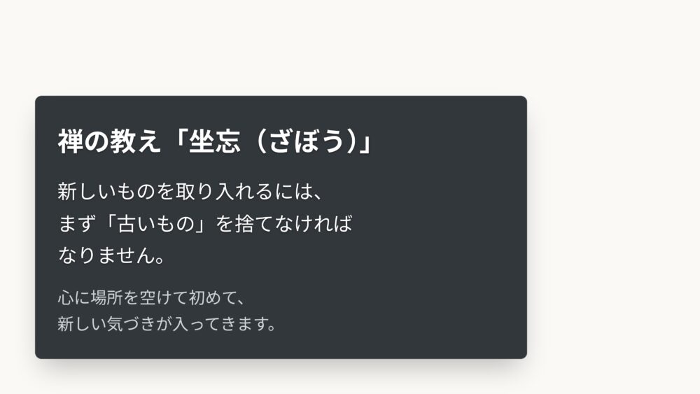 ここで、禅の世界にある坐忘という教えを紹介します。
