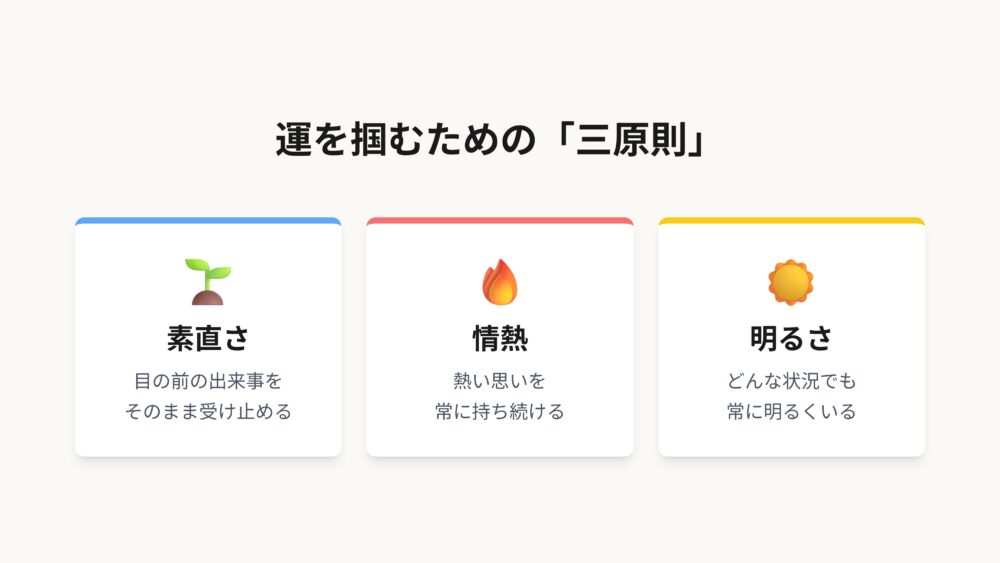 実は、運が良いと言われる人たちが無意識に実践している、とてもシンプルな三つの原則が存在します。