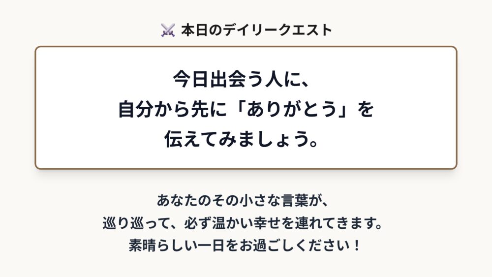 今日これから出会う人に、自分から先にありがとうを伝えてみてください。
