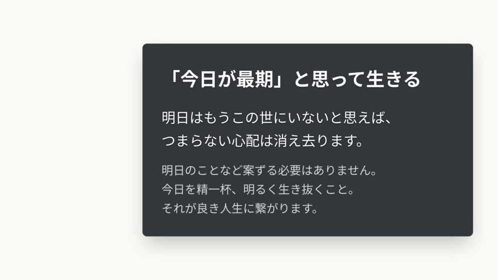 今日が最期だと思って生きる限り、どんな世の中であっても、あなたの人生は素晴らしいものになります。
