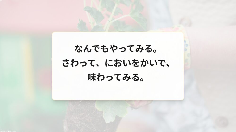 難しく考える前に、実際に手で触れて、においをかいで、味わってみるのです。