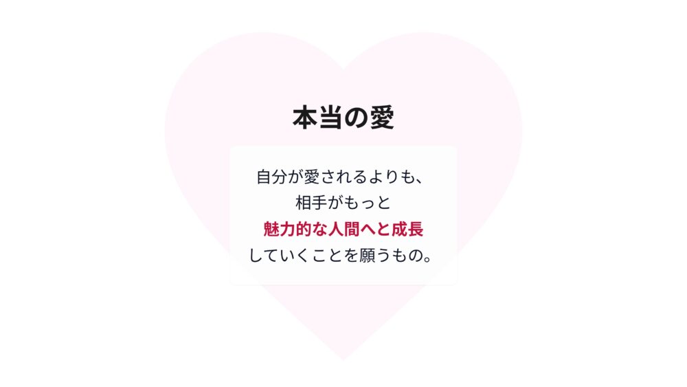 それは、自分が愛されたいと願うことではなく、相手がもっと魅力的な人間へと成長していくことを願うことです。