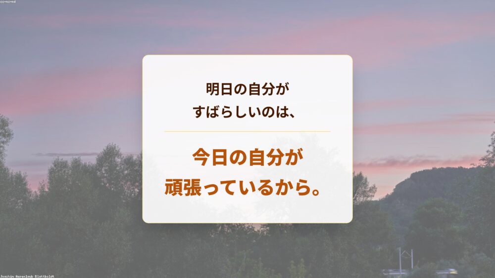 もしも、明日の自分が素晴らしい存在だとしたら、それは、今日のあなたが頑張っているからです。